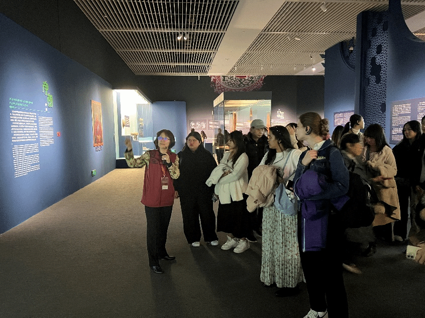 本次研学活动的创新亮点在于“课前预热+现场实践”的教学设计。活动前两周,王向晖老师特别结合“中文+文旅”课程教学内容,为上合组织国家的留学生们开设了专题讲座。课堂中,来自俄罗斯、哈萨克斯坦、吉尔吉斯斯坦、巴基斯坦、伊朗等国的学生们,在王老师带领下提前“云游”特展,通过高清图片、史料文献和背景故事,系统学习了各自国家参展文物的历史脉络与文化内涵。