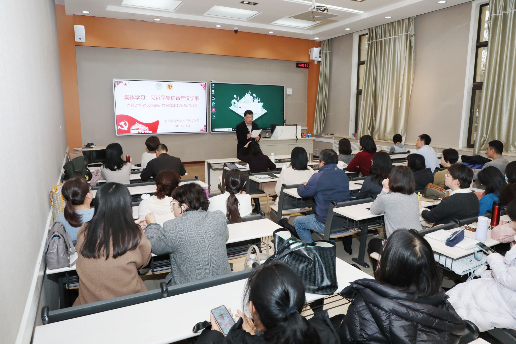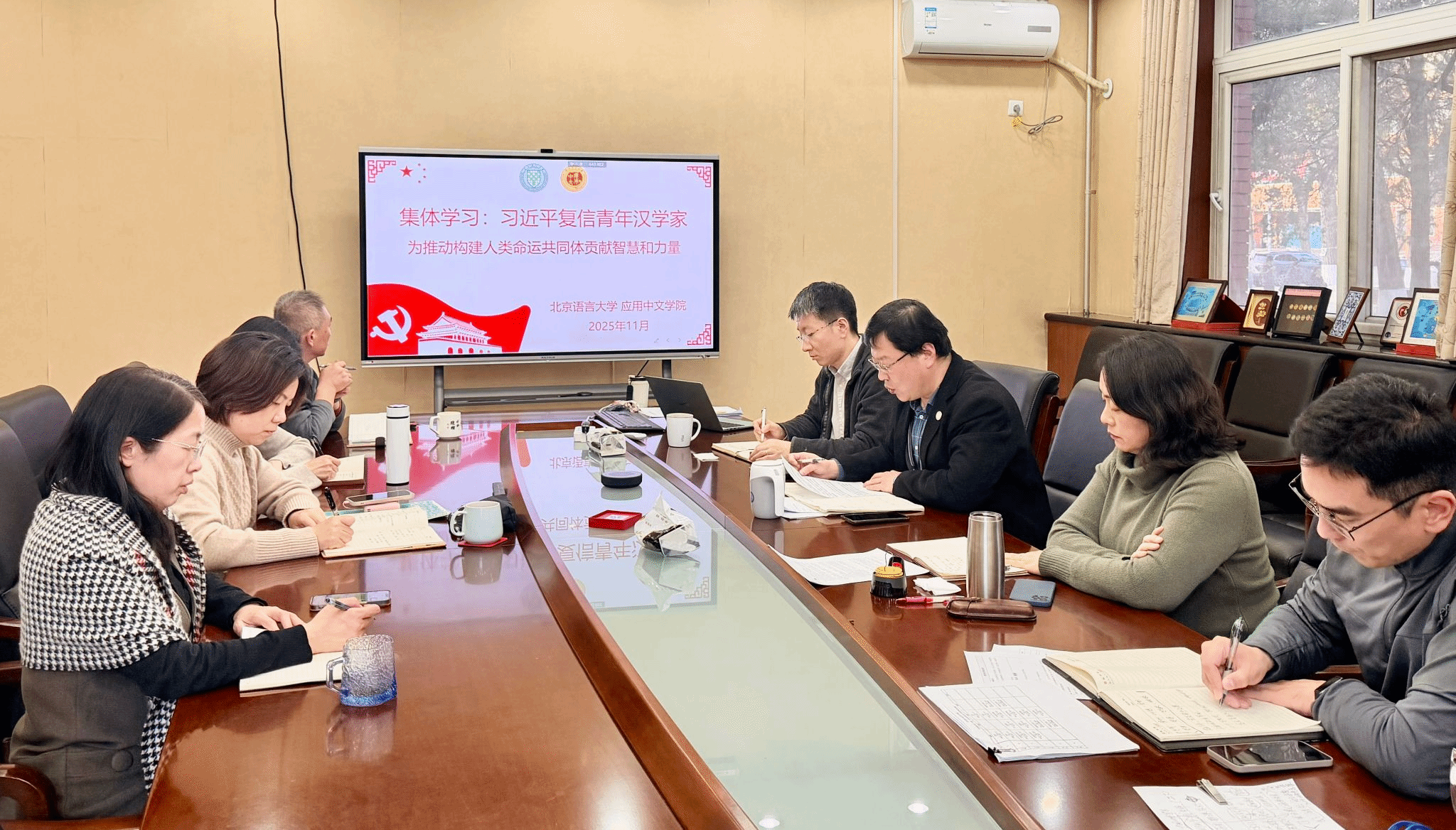 领导班子、全院教职工及中外学生代表,系统学习领会习近平总书记给青年汉学家回信的核心要义与精神实质,号召广大师生将复信精神转化为实际行动,在汉语国际教育与跨文化交流中勇担使命,为推动构建人类命运共同体贡献智慧与力量。