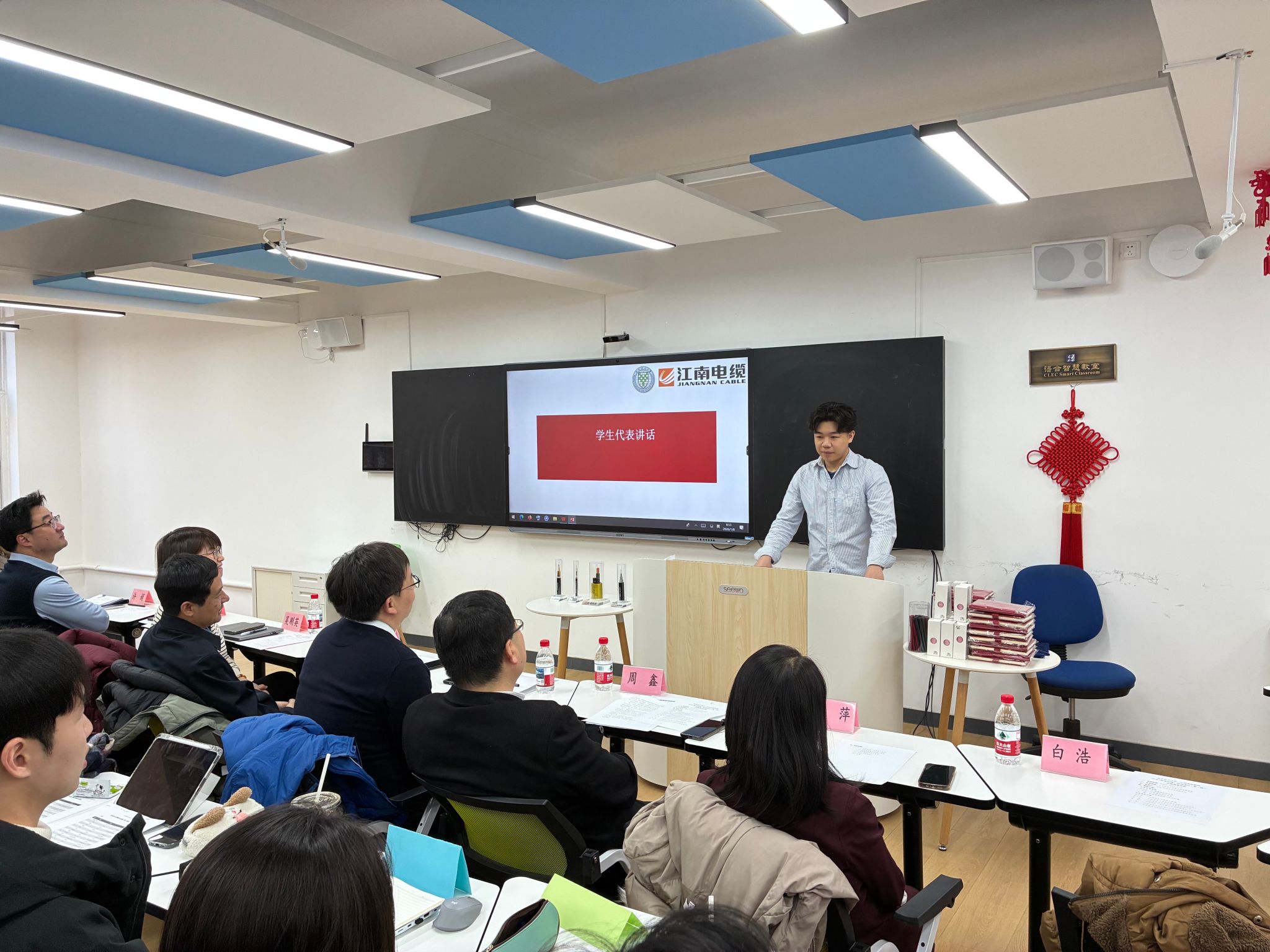 开班典礼上,李志坚校长助理首先致辞。他代表学校对江南电缆集团各位领导的到来表示热烈欢迎,并简要介绍了司机社